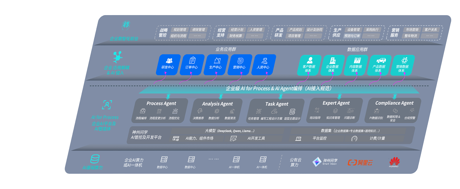 端到端的一站式AI工作空间深度融合了从企业战略规划到日常经营的全流程业务板块,,定向解决车企内部领域多、、、部门多、、链条长、、、场景碎片化等难题,,支持车企快速构建以AI为核心的生产力写作体系,,,实现任务执行与AI能力的无缝集成与交互